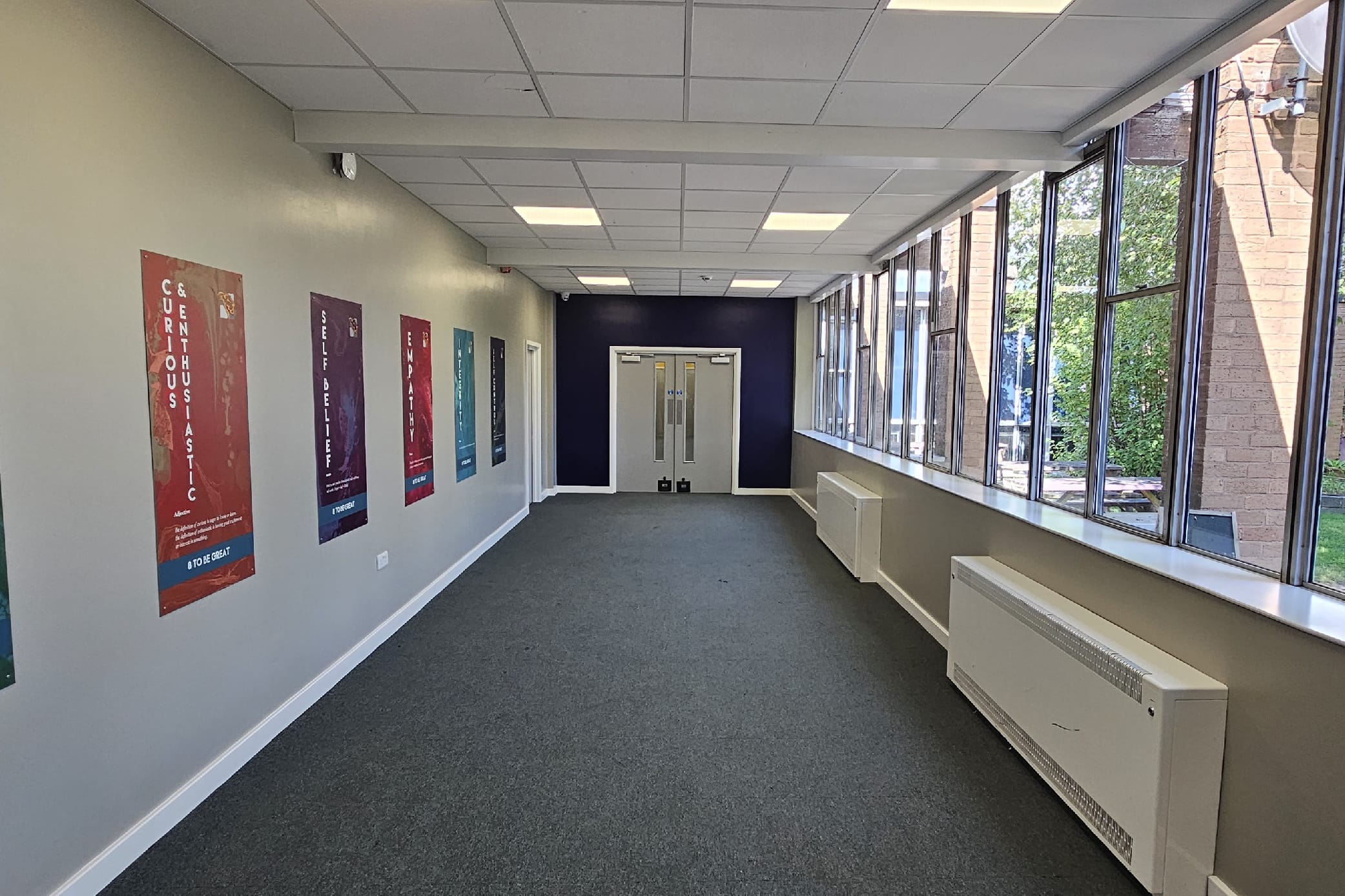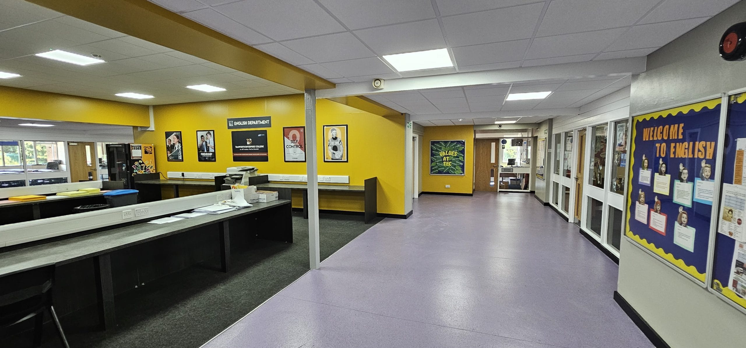 CLC has worked with Lift Schools on several projects since 2022. This particular project, a large-scale project of redecoration at the Tamworth Enterprise College, required the redecoration of communal areas and corridors in the original ‘white block building’, the newer main building, and the theatre, sports hall, gymnasium and pool building.